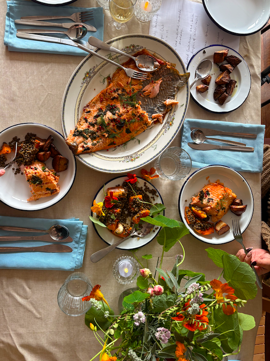 The seasonal feasting menu is revealed on the day, although you choose from either a pescatarian, vegetarian or vegan option when booking. The adults will eat on one large communal table and it will be BYOB. The images on this page are of the autumn event.
